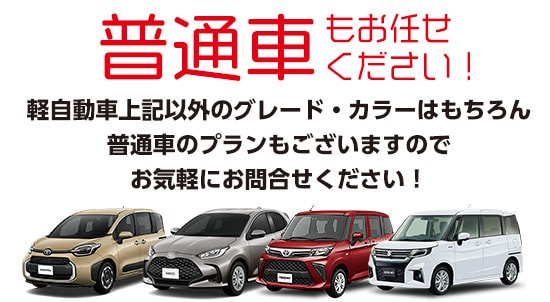 車検費用・自動車税、自賠責保険料、登録諸費用、点検・オイル交換などの費用にロードサービスまで、すべてコミコミで毎月定額です。さらに、メンテナンスやナビなどもセットになったオプションプランもご用意しています。不定期に訪れるまとまった出費の心配なく、安定した定額払いのカーライフをお送りいただけます。